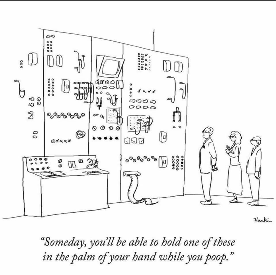 This cartoon reminds me of the winter of ’74/’75 when I was working for a few months as a headhunter for a firm specializing in computer personnel. This is what computers looked like back then.