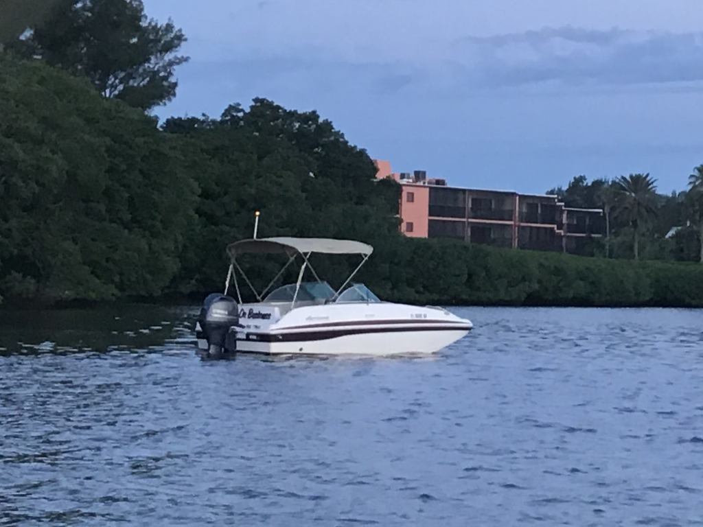 Sometimes you just have to get away even if it’s on board a 17-foot open bow rider. I couldn’t see if he had a cooler or way to cook, but I did make out he was eating something for an evening meal. He slept in rather late despite the bright sun, gulls squawking, and the dumpster trucks swapping containers out at 6 am. He had something to drink as he sat quietly in this tranquil spot, then he raised his anchor and motored off.