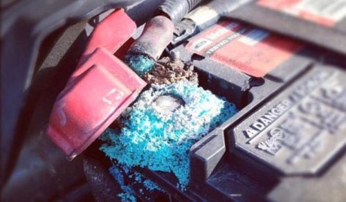 Today I drove down to nearby Sanford, FL and looked at a 2006 Chrysler Town and Country with only 80,000 miles on the clock. LOVED IT! It was clean inside and out and underneath. the only fault I saw was when I lifted the hood and found the positive anode of the battery covered with corrosion. Looked just like this: