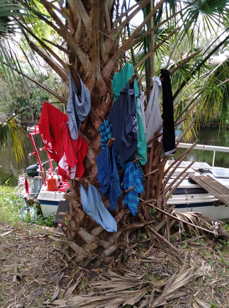 When you live in The Swamp off the Saint Johns River in Central Florida and need to dry your laundry but you don’t have a line or clothes pins…